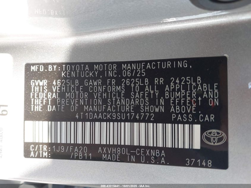 • 4T1DAACK9SU174772