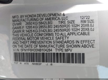 • 5FNYF6H35NB104284