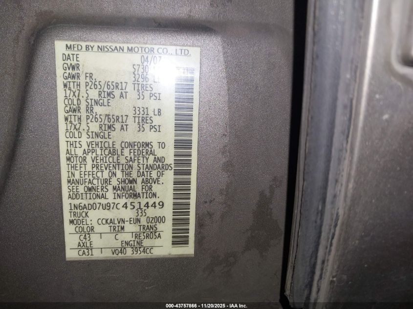 2007 NISSAN FRONTIER LE for Sale in Phoenix, AZ