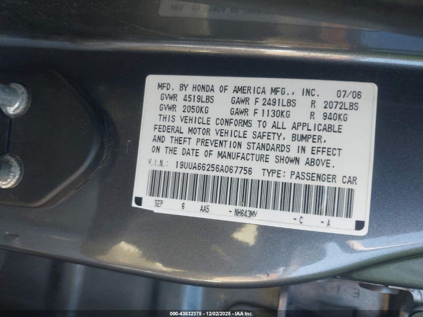 • 19UUA66256A067756