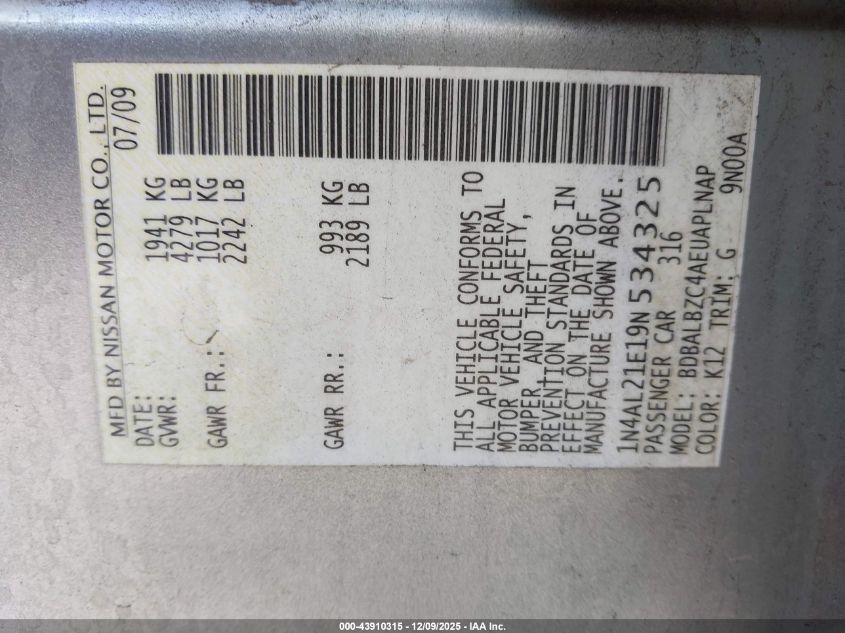 2009 NISSAN ALTIMA 2.5 S for Sale in Kapolei, HI