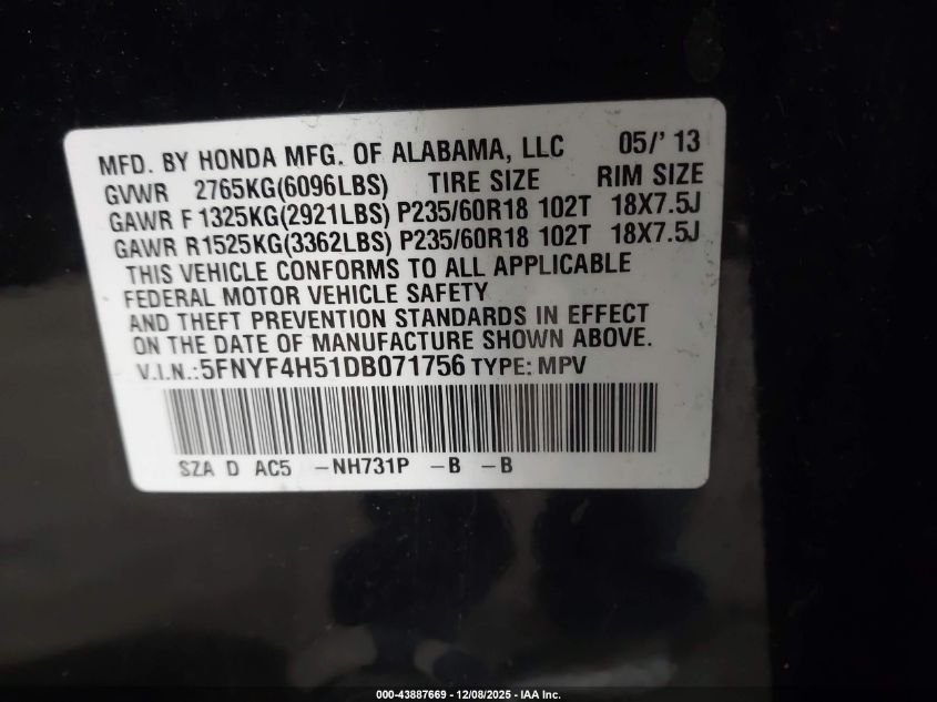 • 5FNYF4H51DB071756