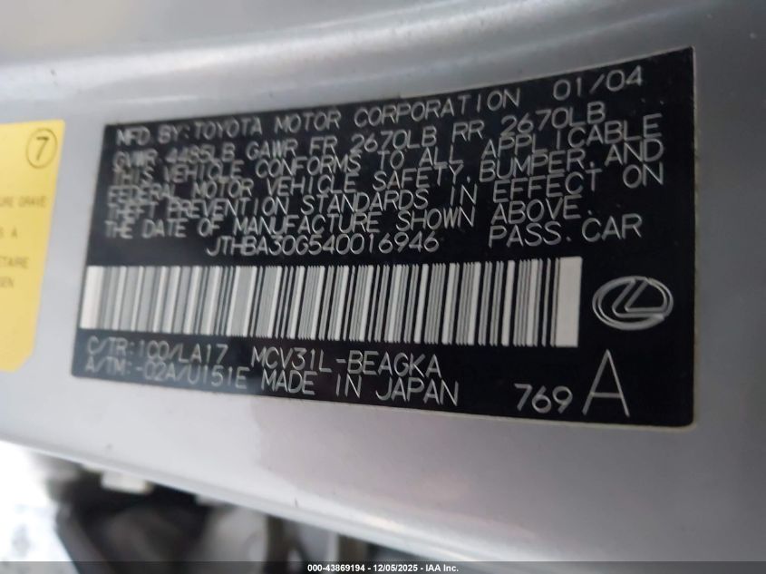 • JTHBA30G540016946