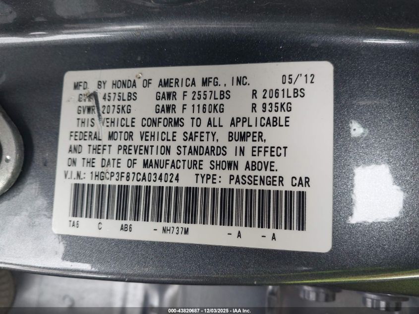 • 1HGCP3F87CA034024