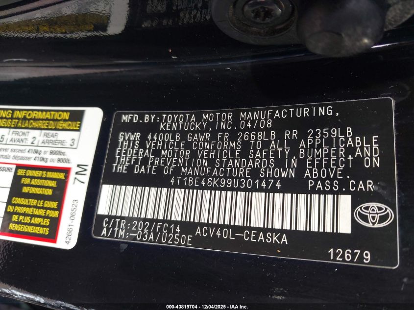 • 4T1BE46K99U301474