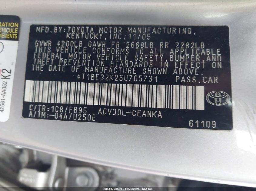 • 4T1BE32K26U705731