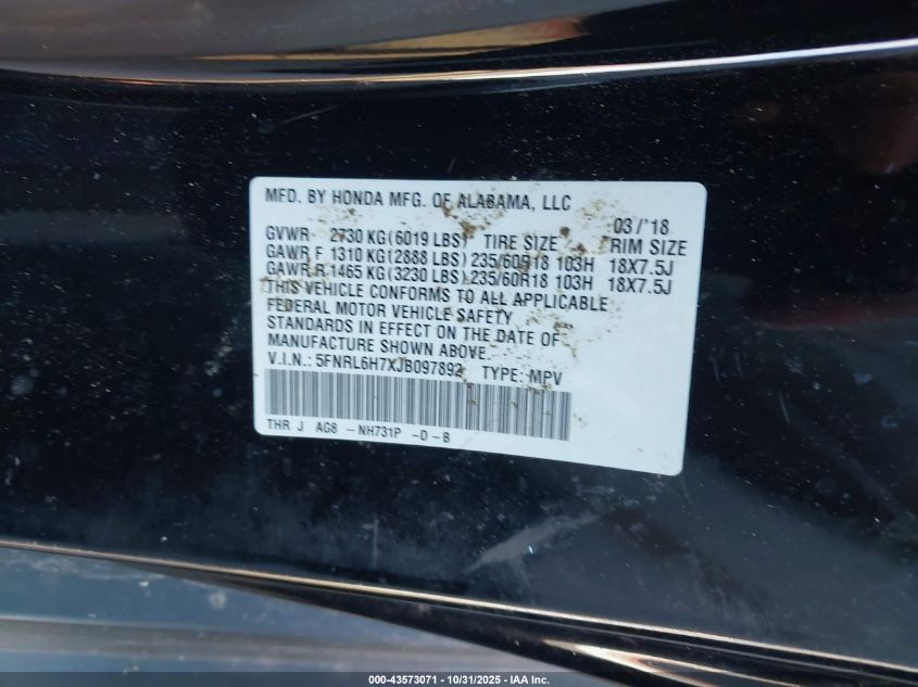 • 5FNRL6H7XJB097892