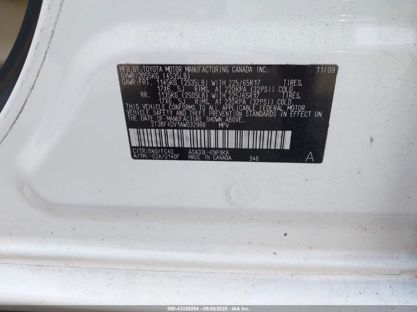 • 2T3BF4DV1AW032988