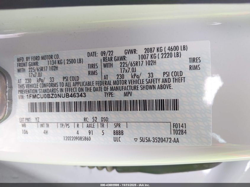 • 1FMCU0BZ0NUB46343