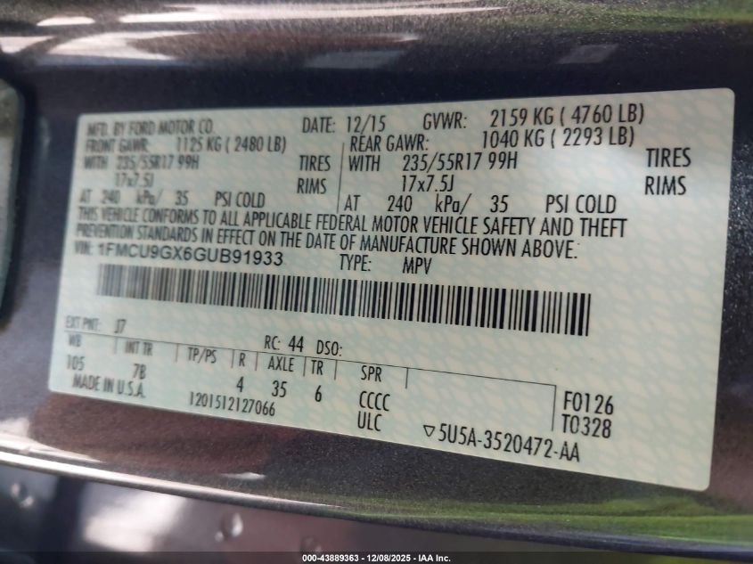 • 1FMCU9GX6GUB91933