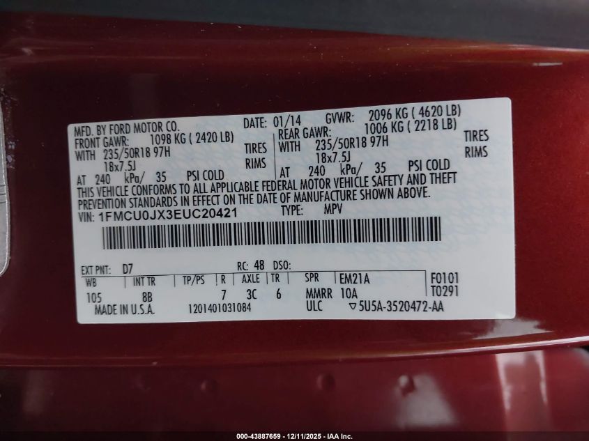 • 1FMCU0JX3EUC20421