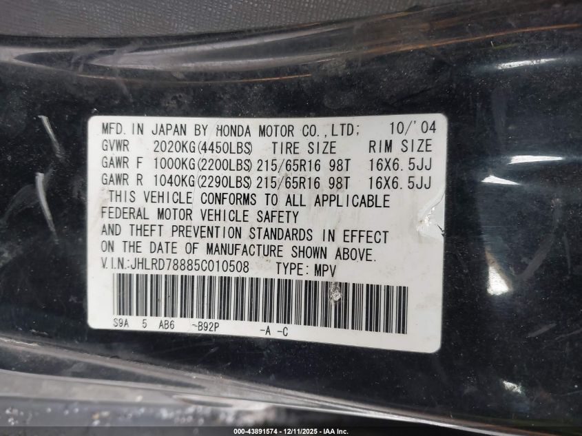 2005 HONDA CR-V EX for Sale in New Philadelphia, OH