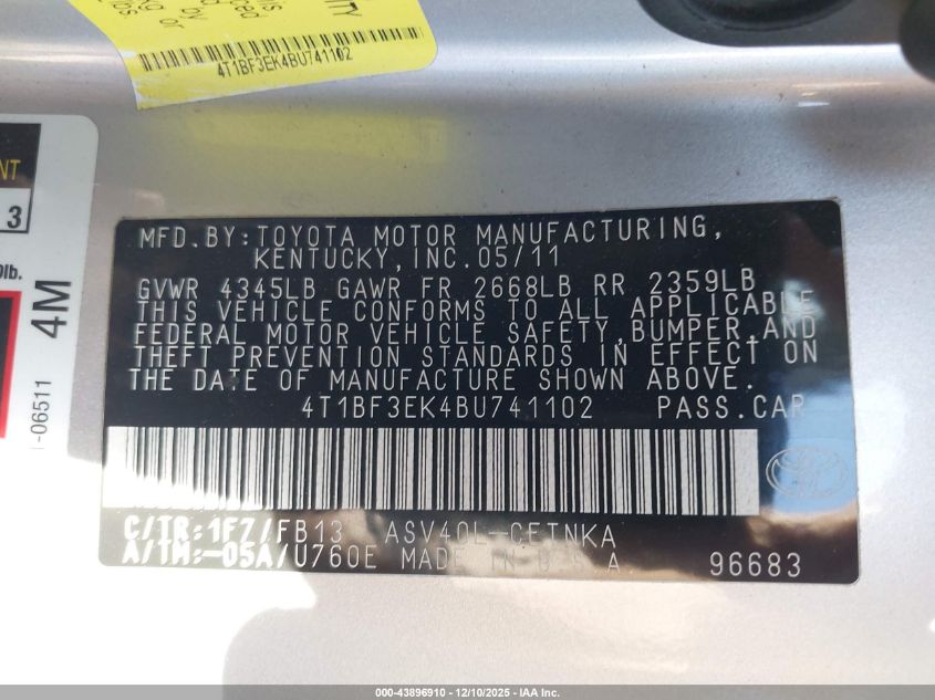 • 4T1BF3EK4BU741102