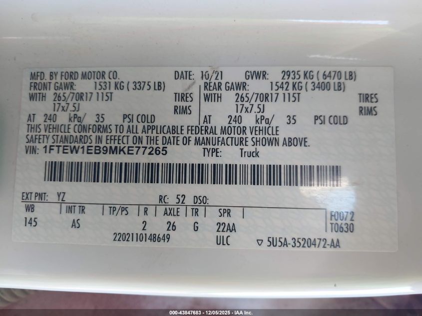 • 1FTEW1EB9MKE77265
