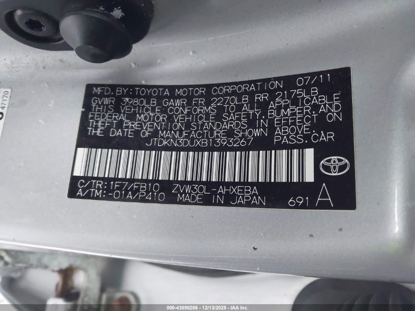 • JTDKN3DUXB1393267