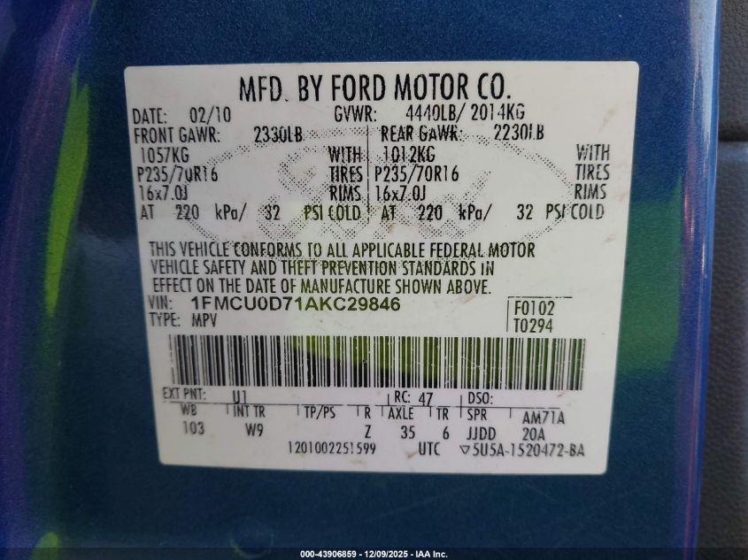 • 1FMCU0D71AKC29846