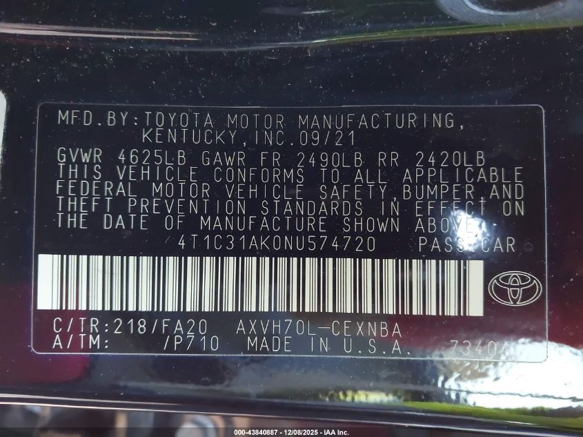 • 4T1C31AK0NU574720