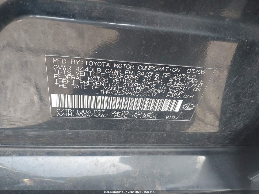 • JTHBK262962012537