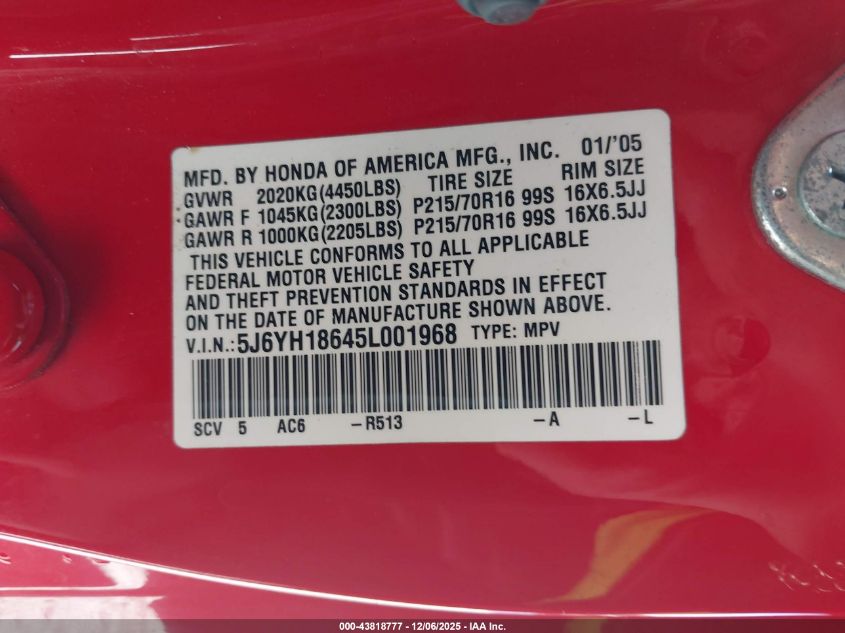 • 5J6YH18645L001968