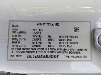 2020 TESLA MODEL 3 STANDARD RANGE PLUS REAR-WHEEL DRIVE/STANDARD RANGE REAR-WHEEL DRIVE for Sale in Electric Vehicle Auctions, None