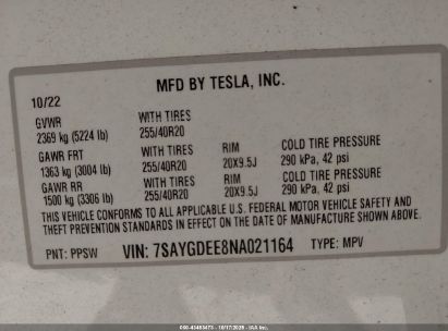 2022 TESLA MODEL Y LONG RANGE DUAL MOTOR ALL-WHEEL DRIVE for Sale in Electric Vehicle Auctions, None