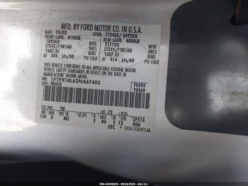• 1FTPX18L63NA67403