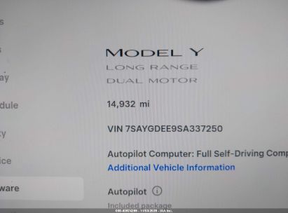 2025 TESLA MODEL Y LONG RANGE DUAL MOTOR ALL-WHEEL DRIVE for Sale in Electric Vehicle Auctions, None