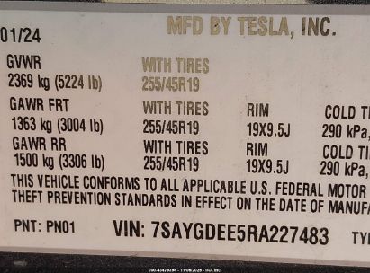 2024 TESLA MODEL Y LONG RANGE DUAL MOTOR ALL-WHEEL DRIVE for Sale in Electric Vehicle Auctions, None
