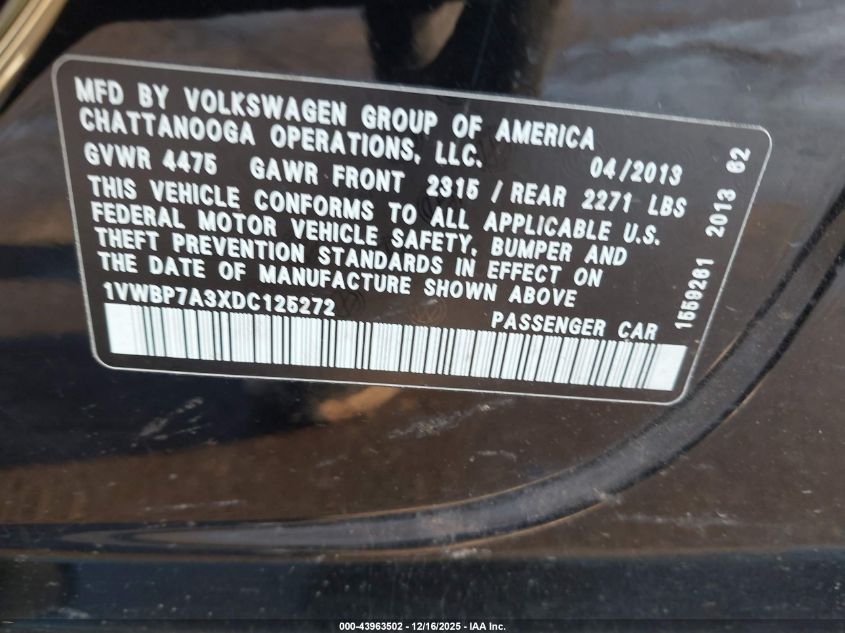 • 1VWBP7A3XDC125272