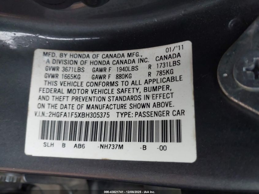• 2HGFA1F5XBH305375