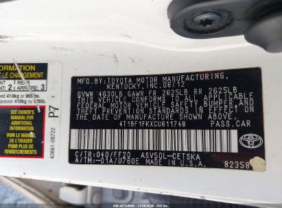 • 4T1BF1FKXCU611748