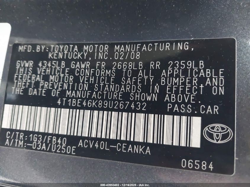 • 4T1BE46K89U267432