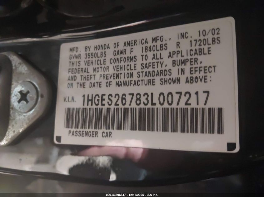 • 1HGES26783L007217
