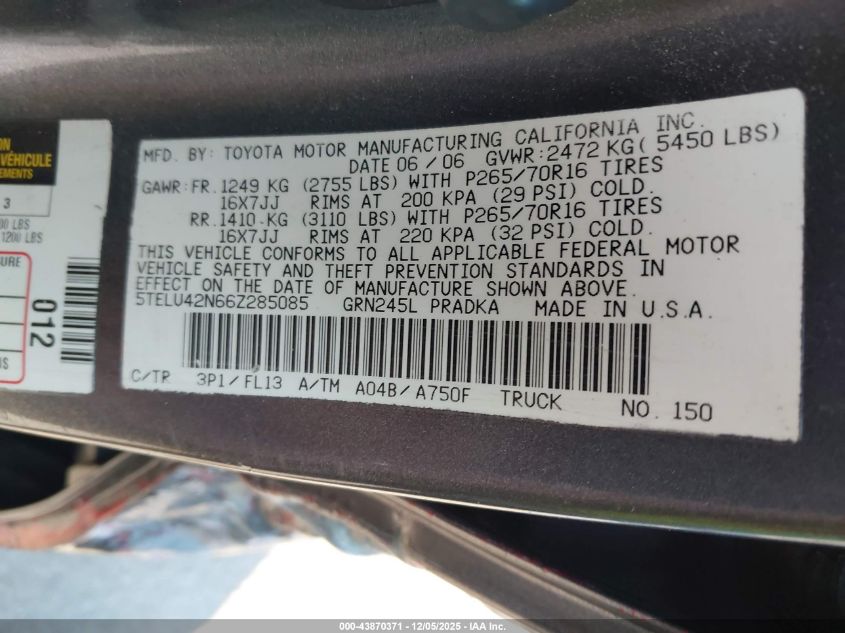 2006 TOYOTA TACOMA BASE V6 for Sale in San Diego, CA