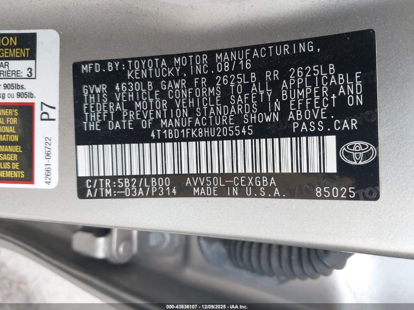 • 4T1BD1FK8HU205545