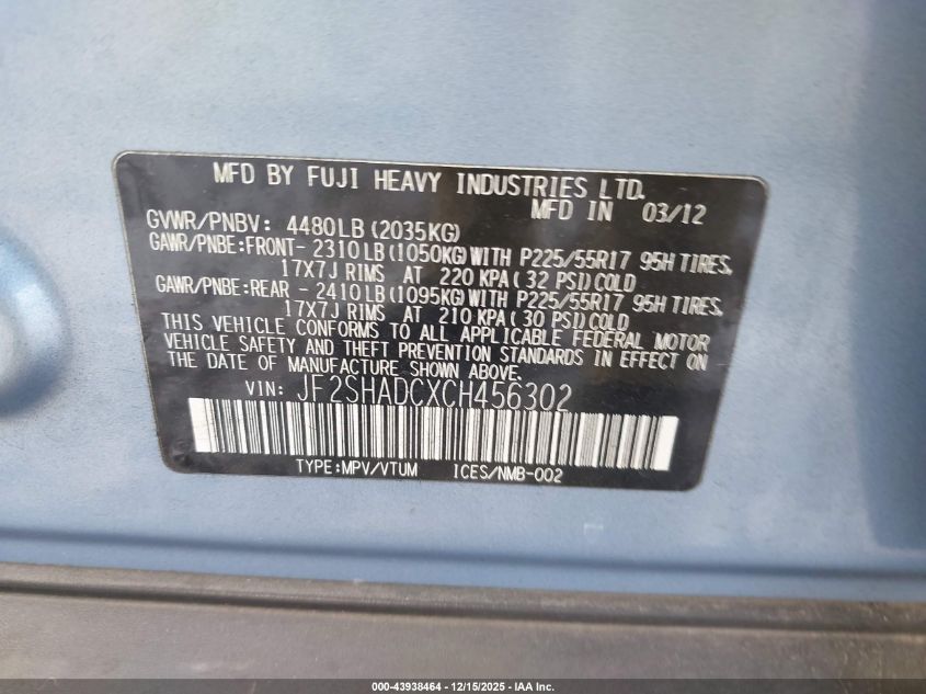 • JF2SHADCXCH456302