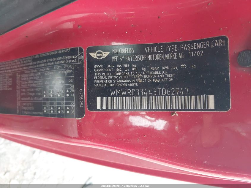 • WMWRE33443TD62747