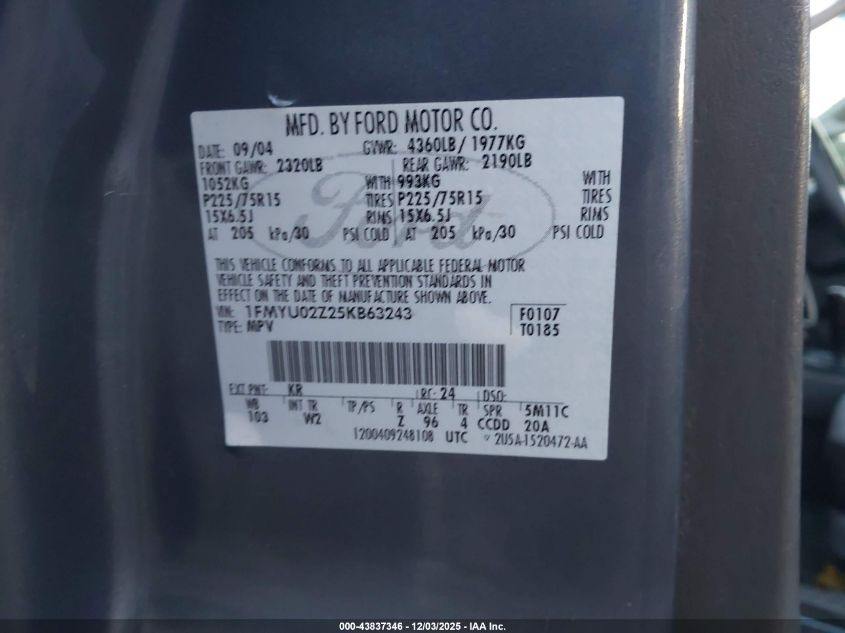 • 1FMYU02Z25KB63243