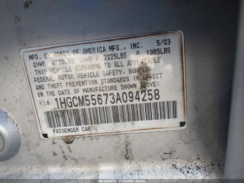 • 1HGCM55673A094258