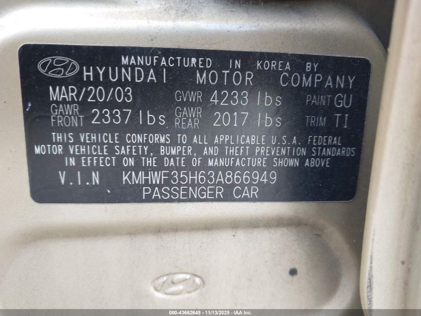 2003 HYUNDAI SONATA GLS/LX for Sale in Medford, NY