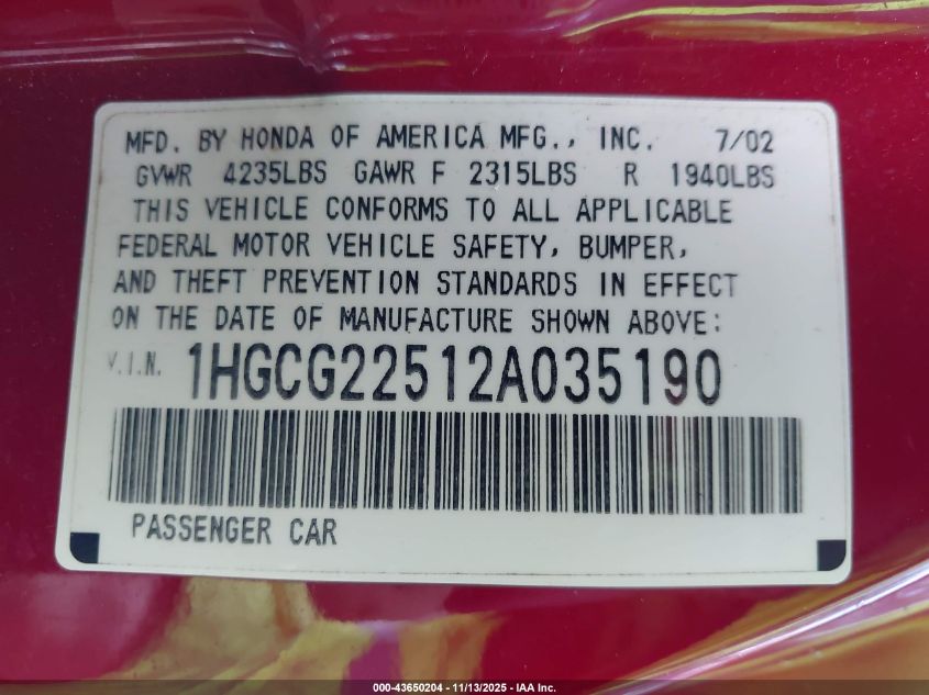 • 1HGCG22512A035190