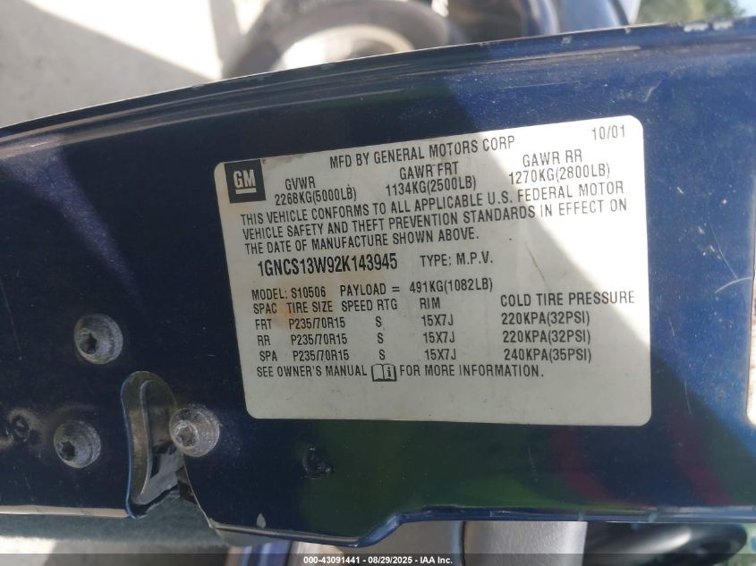• 1GNCS13W92K143945