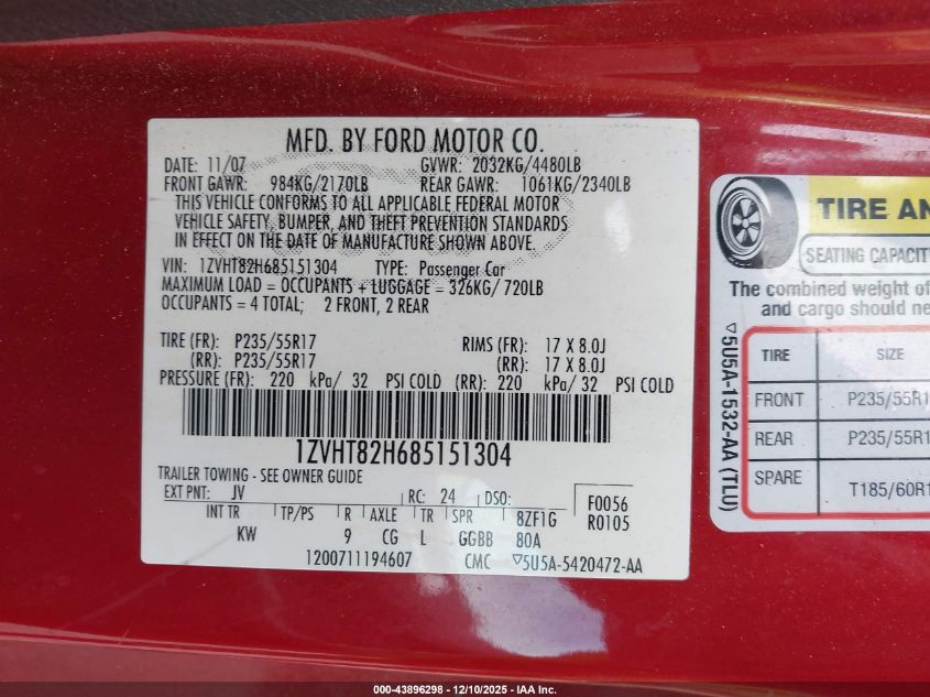 • 1ZVHT82H685151304