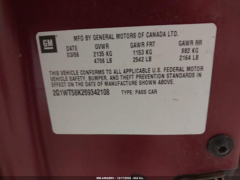 • 2G1WT58K269342108