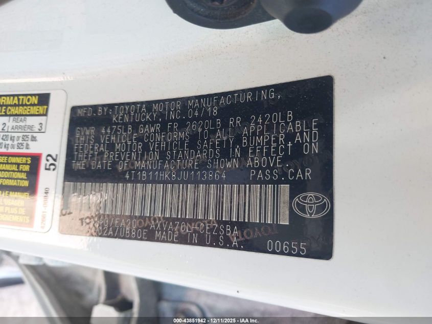 • 4T1B11HK8JU113864