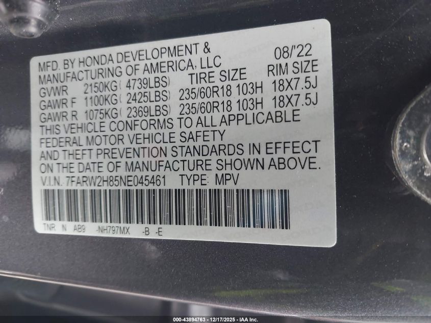 • 7FARW2H85NE045461