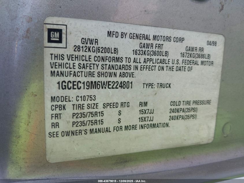 1998 CHEVROLET C1500 FLEETSIDE for Sale in Santa Clarita, None