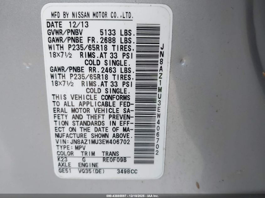 • JN8AZ1MU3EW406702