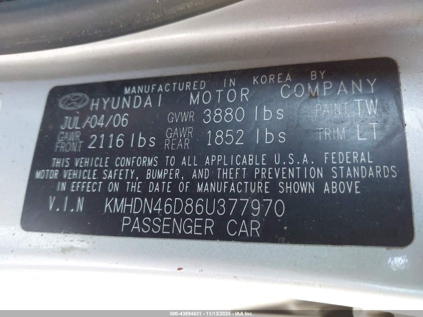 2006 HYUNDAI ELANTRA GLS/LIMITED for Sale in Markham, IL