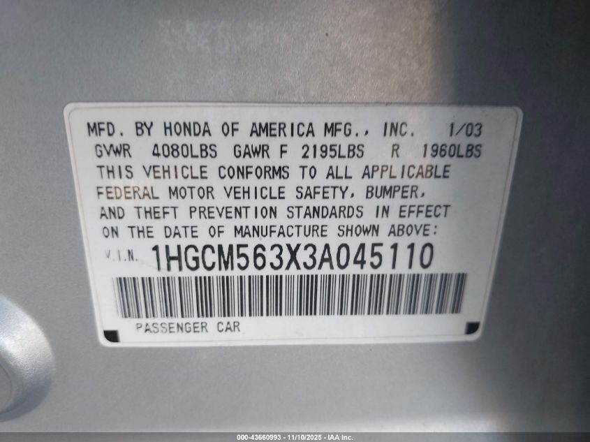 • 1HGCM563X3A045110